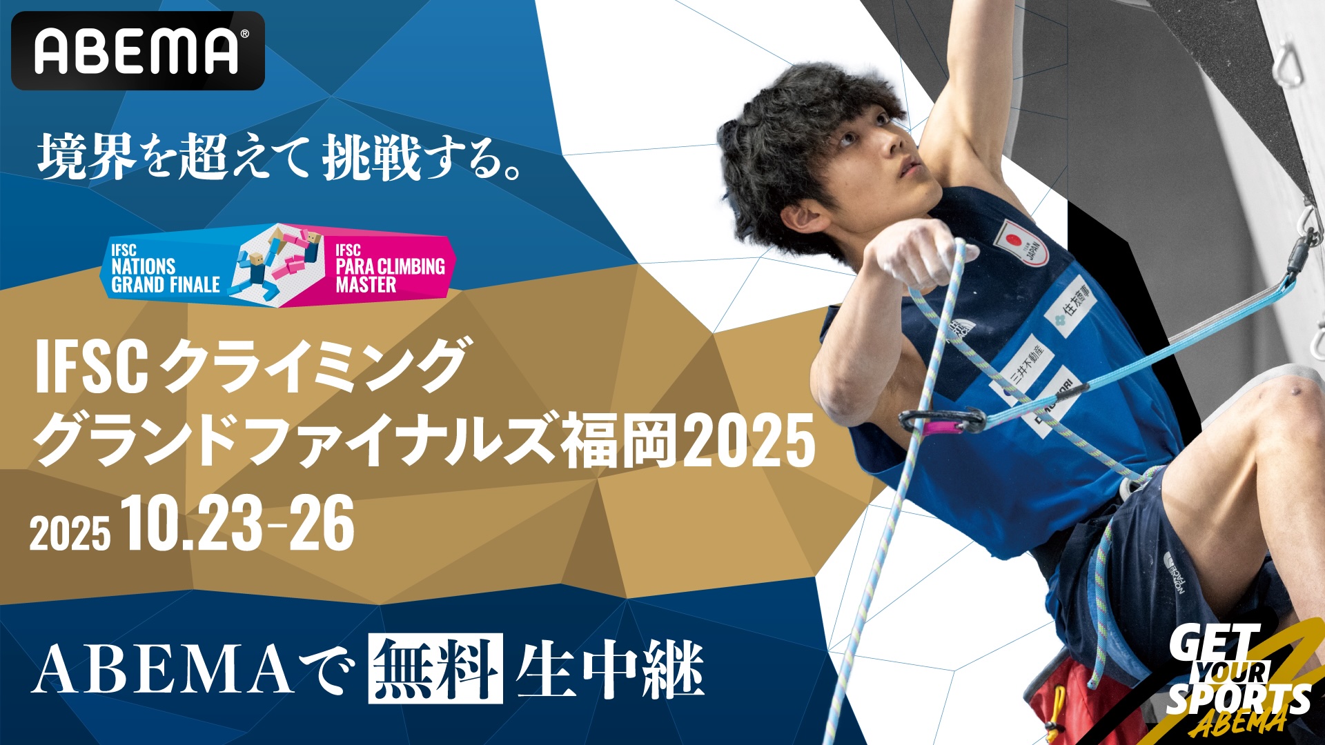 「ABEMA」にて10月23日(木)より全種目無料生中継 『IFSCクライミンググランドファイナルズ福岡2025』解説は宮澤克明、野口啓代に決定 -