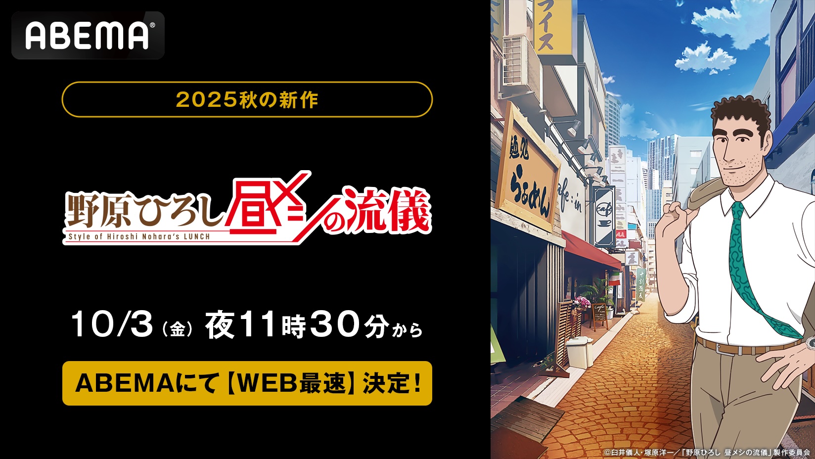 新作秋アニメ『野原ひろし 昼メシの流儀』、「ABEMA」でWEB最速配信決定!10月3日(金)夜11時30分より無料放送! -