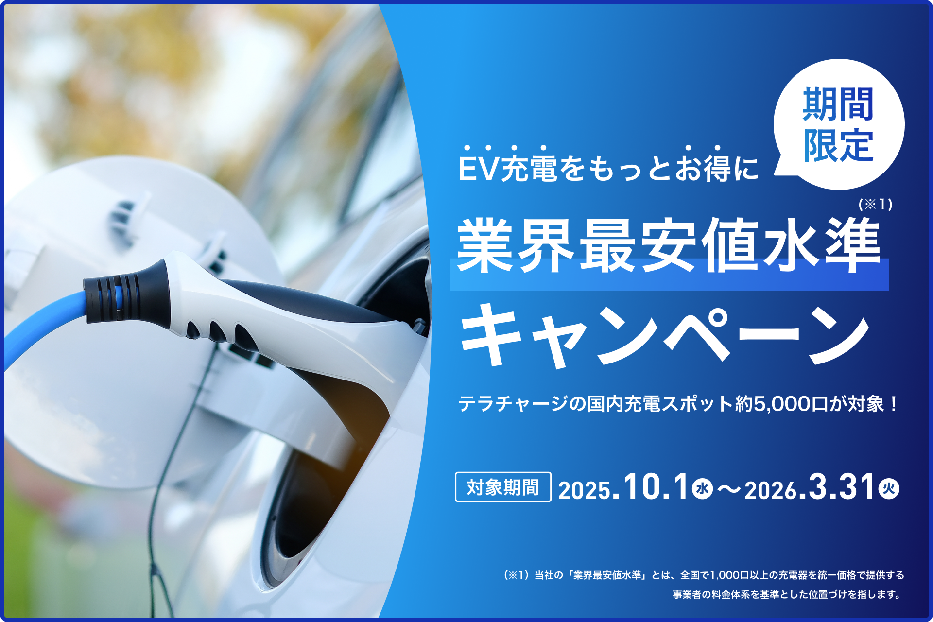 EV充電料金(超急速&普通)が業界最安値水準で10月1日より期間限定スタート