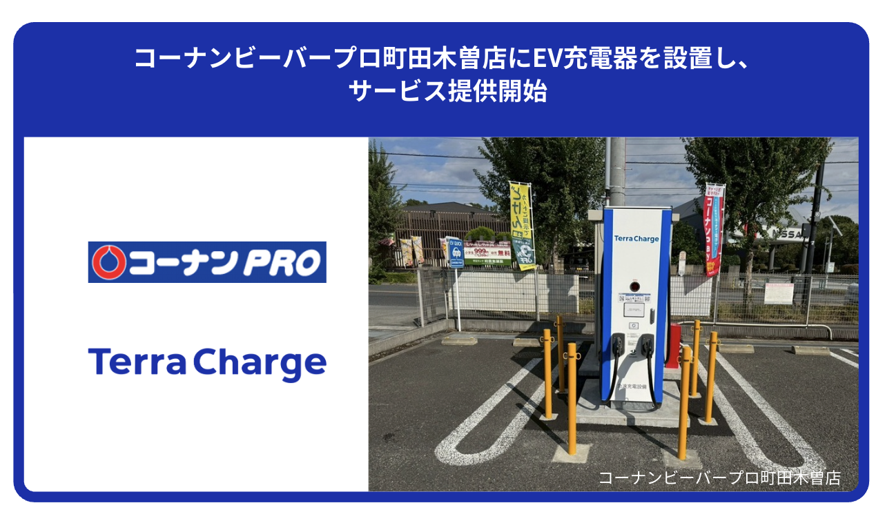 コーナンビーバープロ町田木曽店にEV充電器を設置し、サービス提供開始