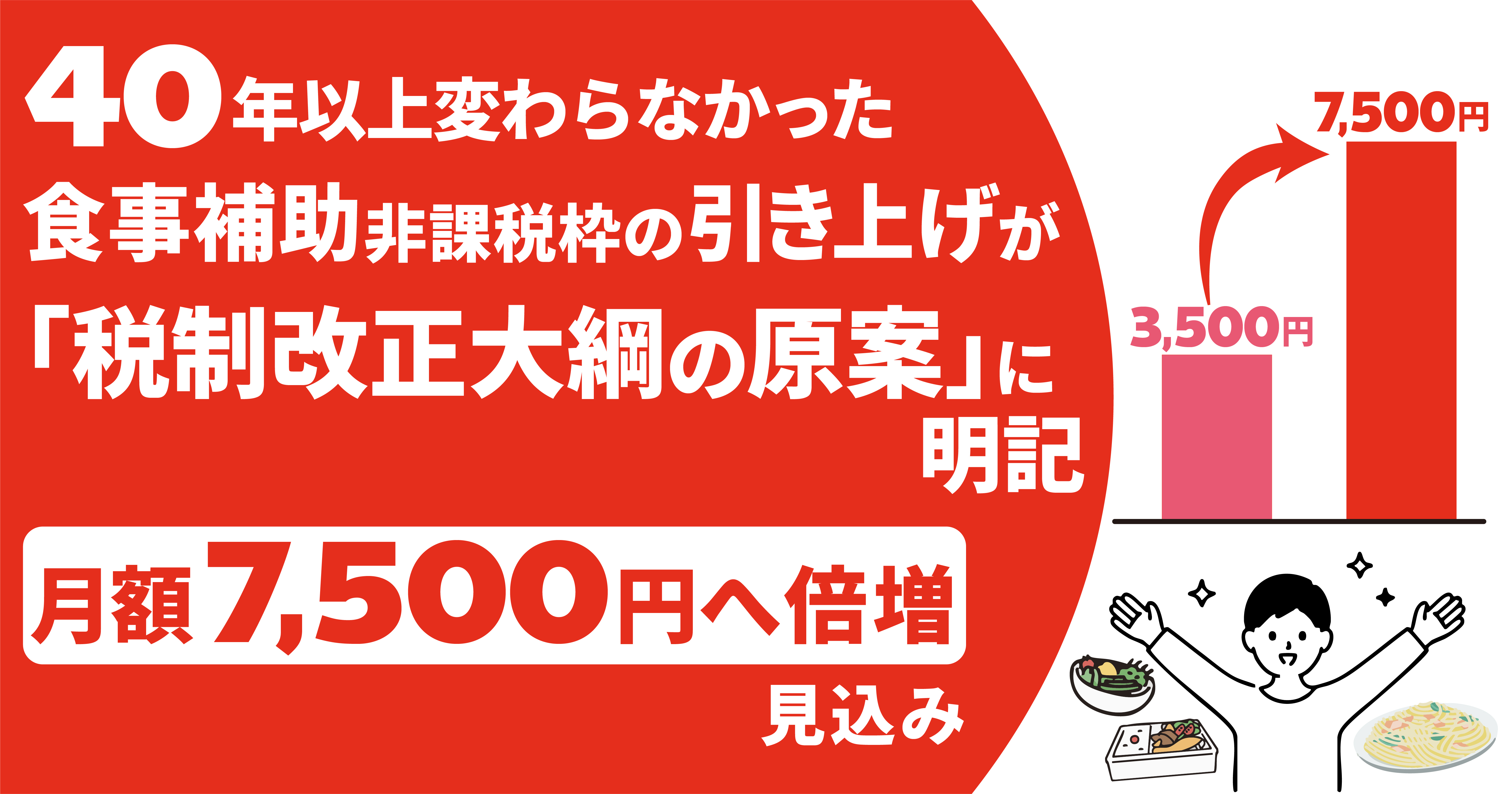 与党税調、約40年ぶりの食事補助非課税枠引き上げを「税制改正大綱の原案」に明記!月額7,500円と倍増へ