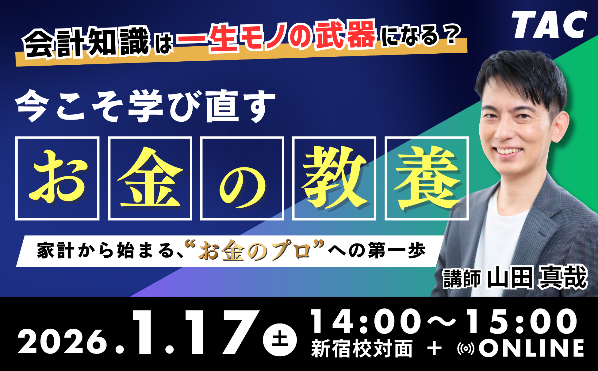 【登録者110万人超】日本トップクラス会計士YouTuber直伝!「今こそ学び直す"お金の教養"」1/17(土) 資格の学校TAC開催 -