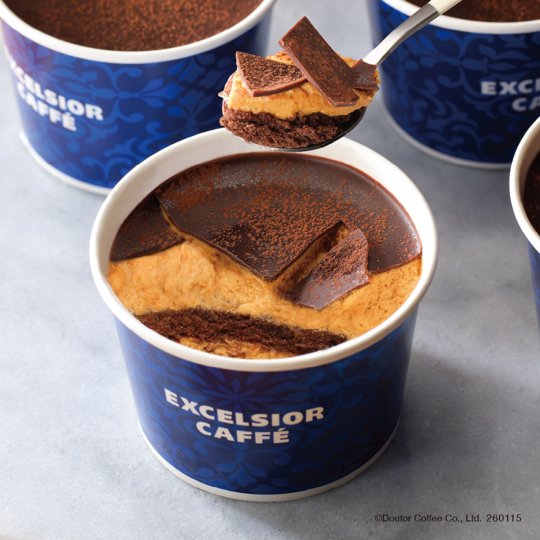 エクセルシオール カフェで1月15日より「割って食べるパリチョコキャラメルティラミス」、1月29日より「3層仕立てのガトーショコラ ~柑橘の香り~」新発売 -