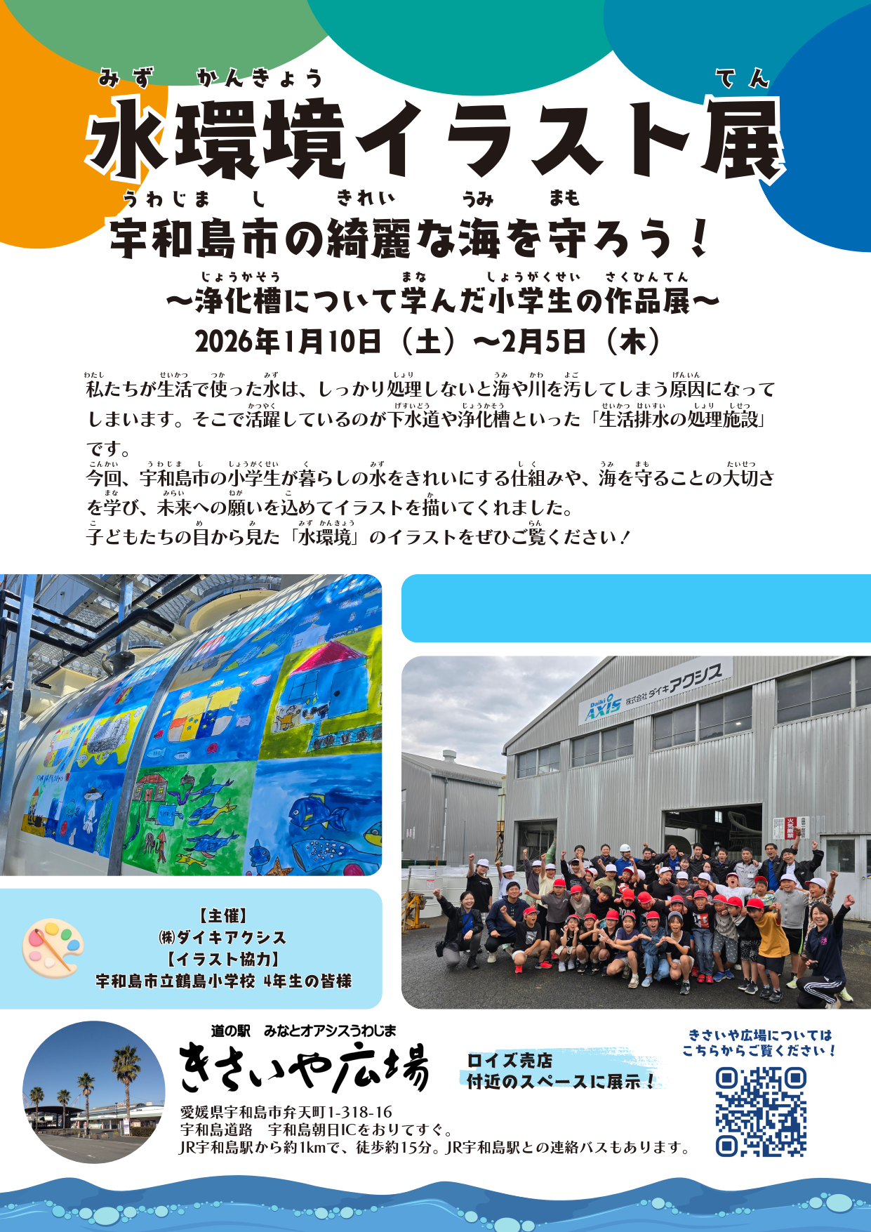 【ダイキアクシス】道の駅 みなとオアシスうわじま きさいや広場で「水環境イラスト展」を開催 -