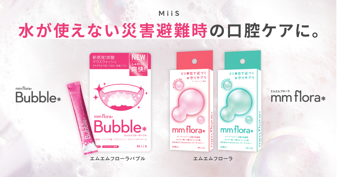【防災の新習慣】オーラル美容ブランド「MiiS」、飲み込み型マウスウォッシュ「エムエムフローラバブル」を備蓄アイテムとして提案