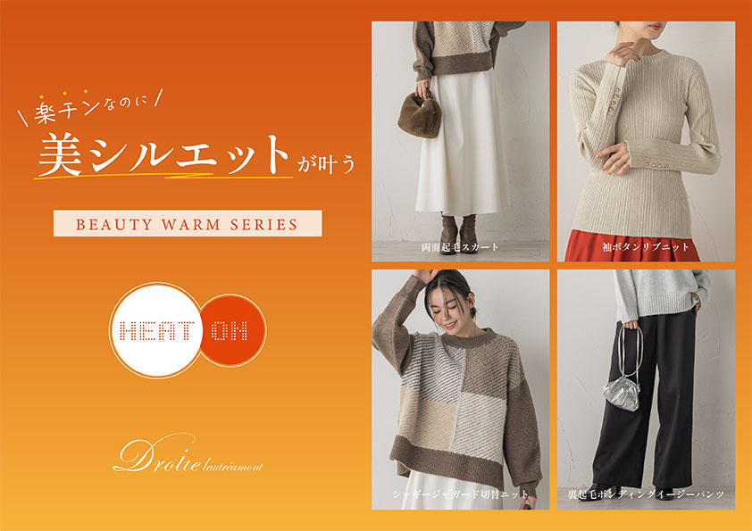 【Droite lautreamont(ドロワット ロートレアモン)】“あったかいのに、おしゃれ”を叶える、暖かさと着心地にこだわった「BEAUTY WARM SERIES」から新作登場。