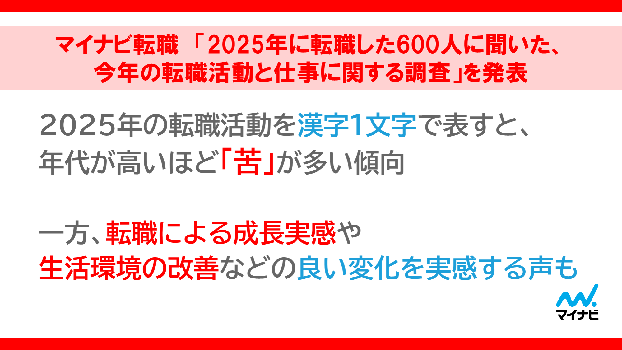 マイナビ転職「2025年に転職した600人に聞いた、今年の転職活動と仕事に関する調査」を発表