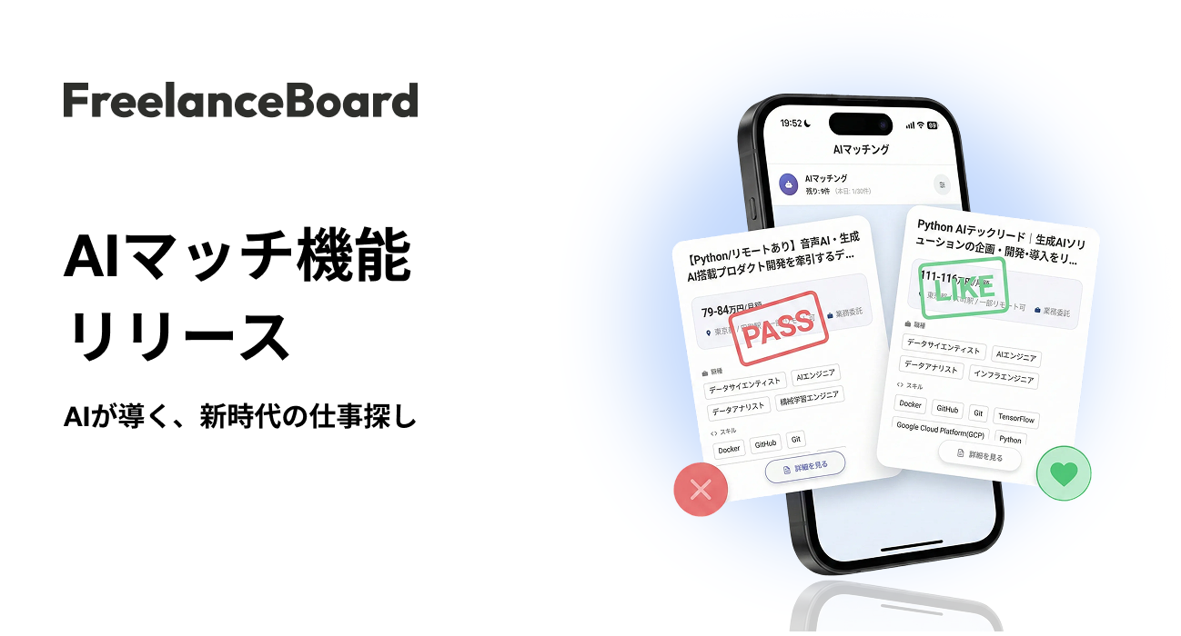フリーランスエンジニア・ITフリーランスの案件・求人検索サイト『フリーランスボード』が「AIマッチ機能」をリリース