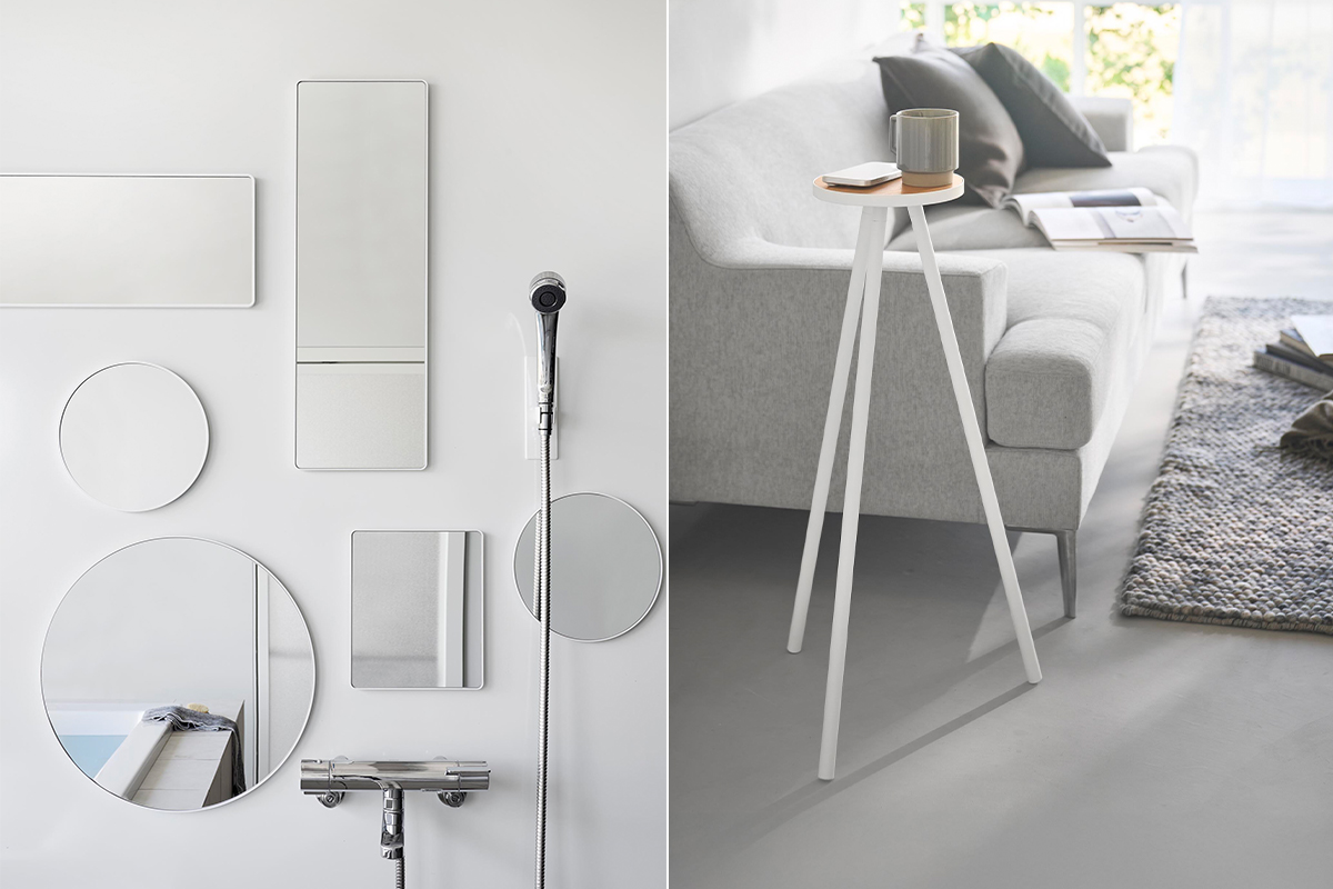 【山崎実業 新商品のお知らせ】 マグネットで設置できるバスルームミラーや、ちょっと置きに最適なハイテーブルなど、新商品が発売になりました。