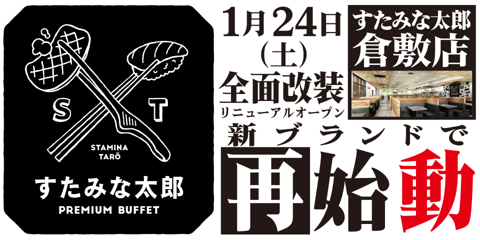 焼肉、寿司食べ放題の「すたみな太郎 倉敷店」が1/24(土)全面改装オープン!「すたみな太郎 PREMIUM BUFFET 倉敷店」として再始動!