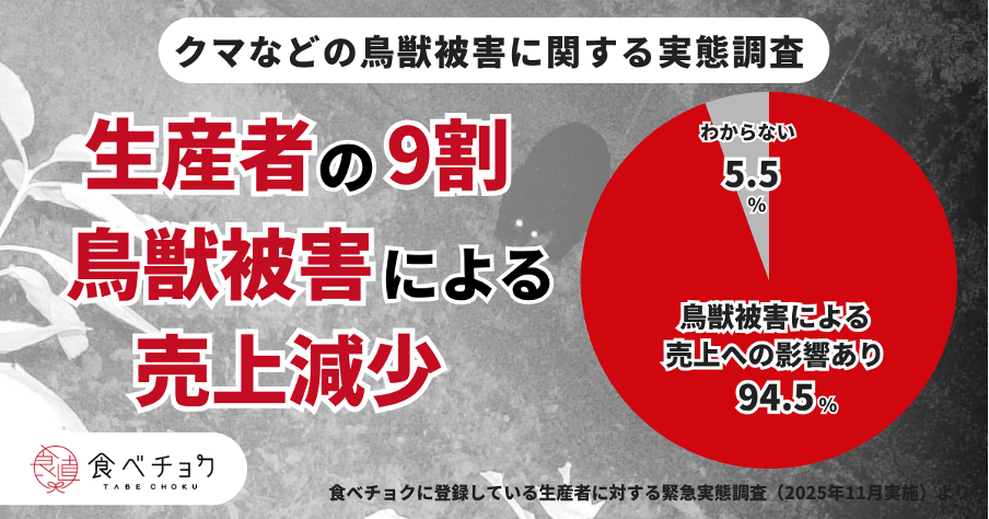 クマなどの鳥獣被害が拡大し9割の生産者に影響。自治体支援は約半数程度にとどまる
