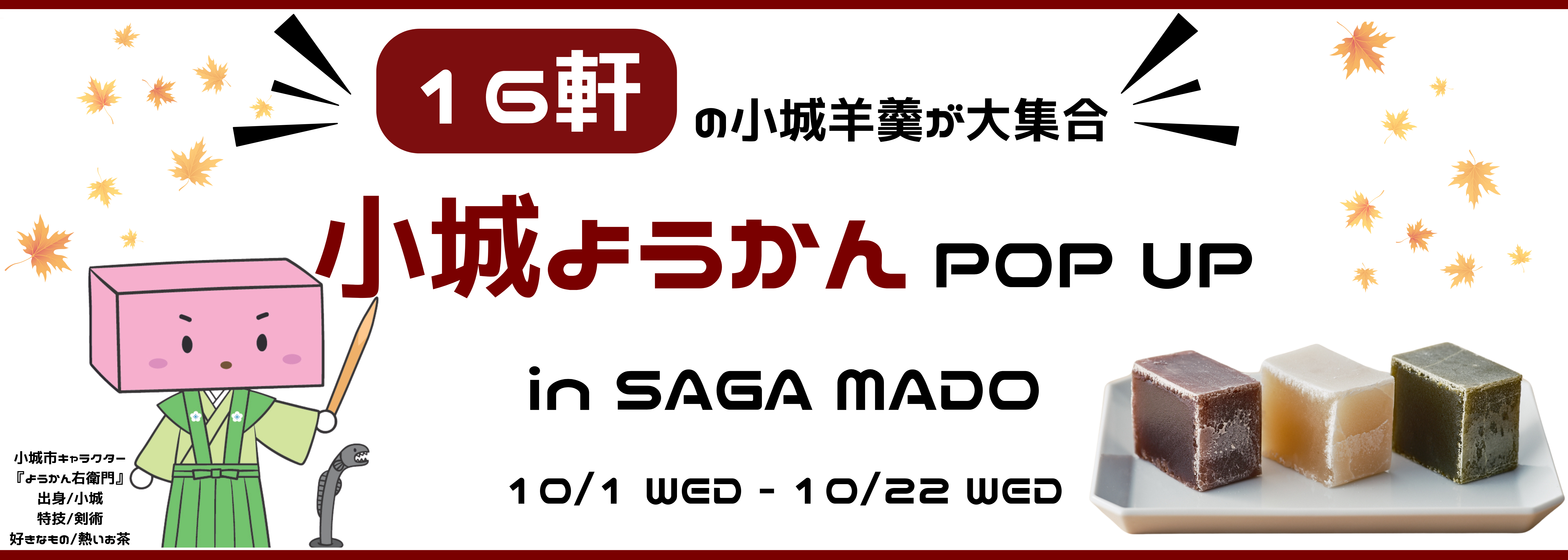 昨年、大好評のPOP UPが ふたたび・・・今年も「小城羊羹POP UP」を開催します!