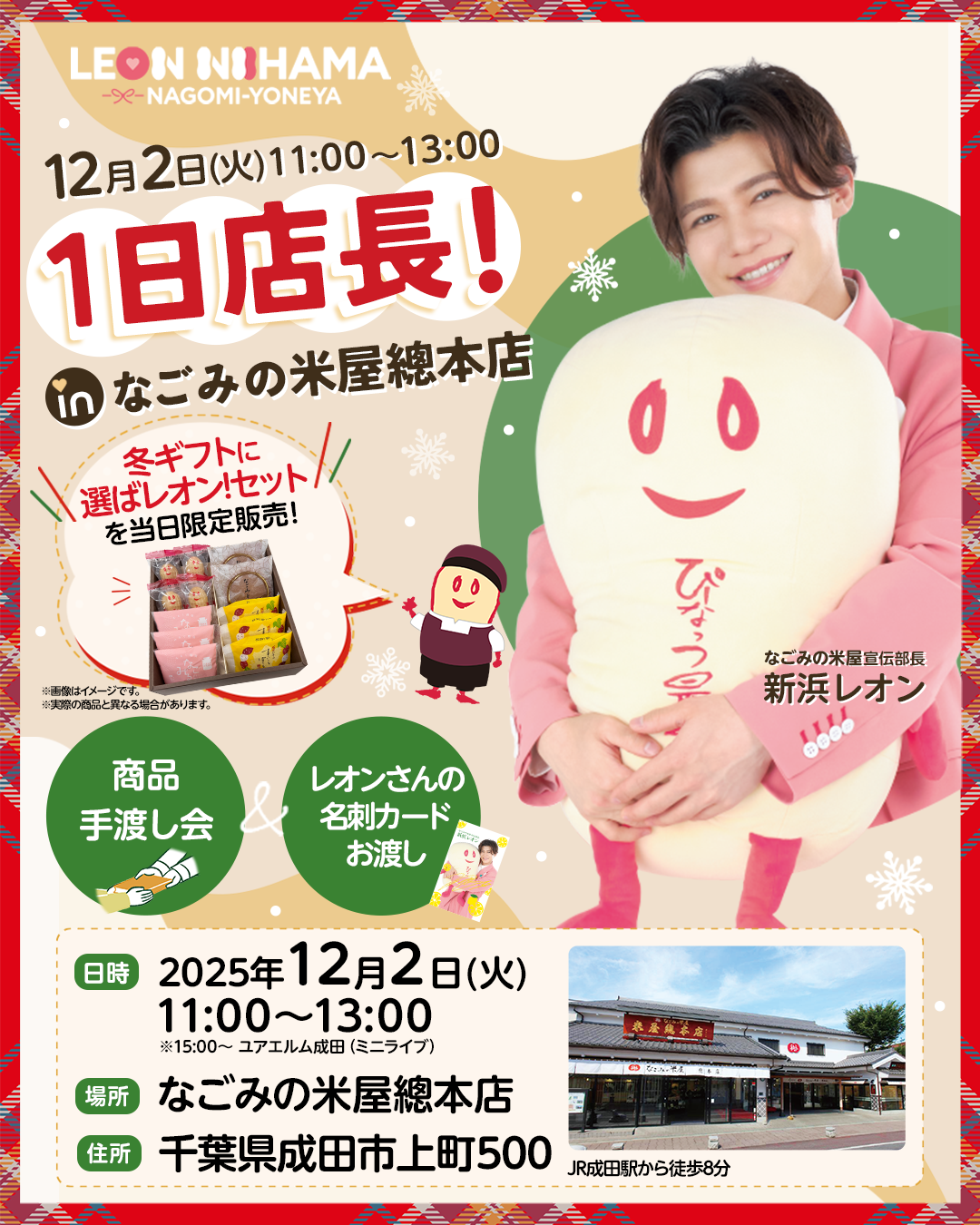 2025年12月 なごみの米屋宣伝部長 新浜レオン 1日店長!in なごみの米屋總本店