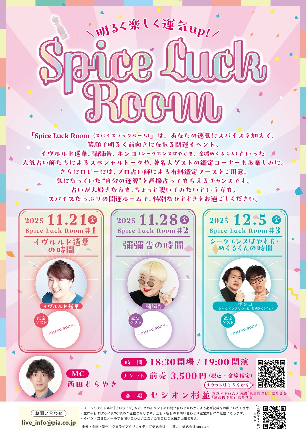 イヴルルド遙華、彌彌告、シークエンスはやとも・めくるくん出演! 著名人ゲストの鑑定コーナーも 占いイベント「Spice Luck Room」開催決定!