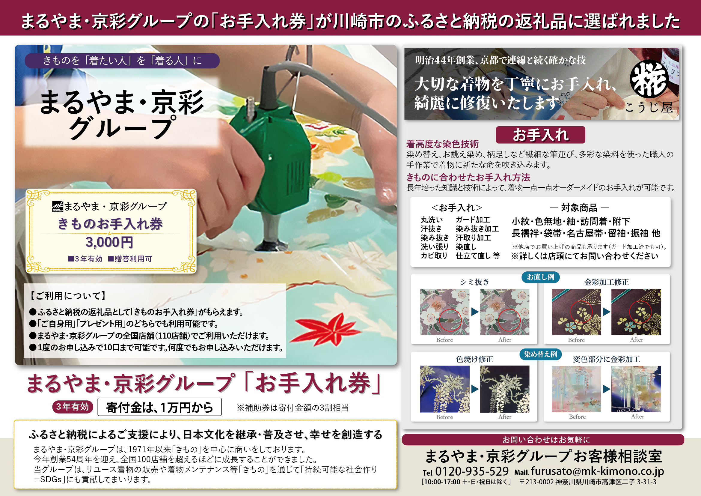 まるやま・京彩グループの川崎市ふるさと納税返礼品「きものお手入れ券」がタウンニュース高津区版で紹介