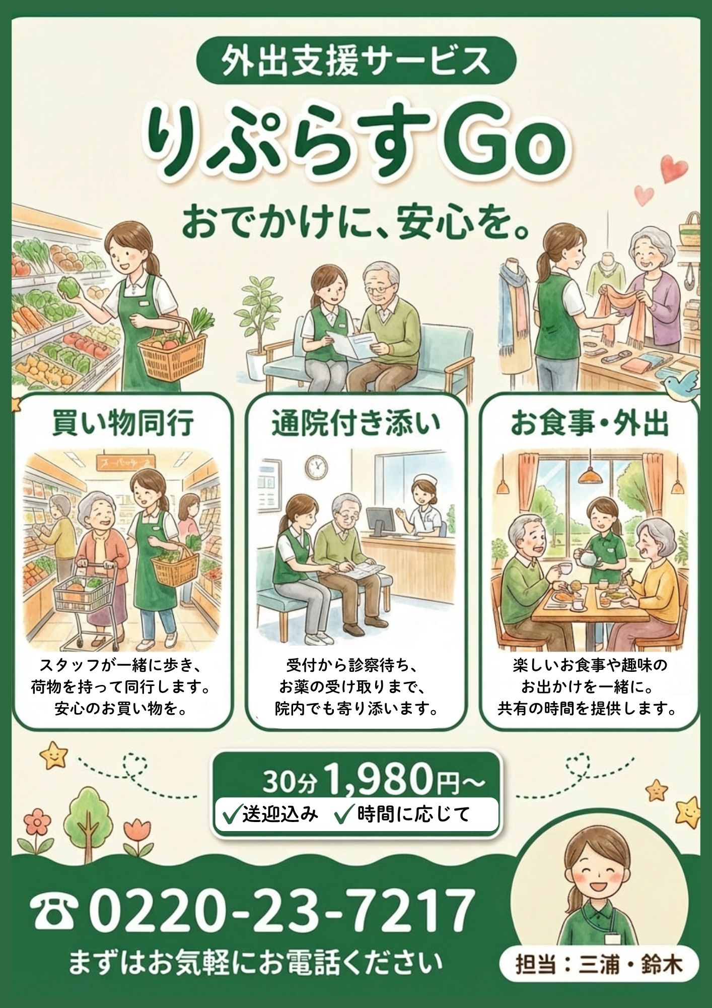 スタジオぷらす登米、「外出支援サービス」4/15開始