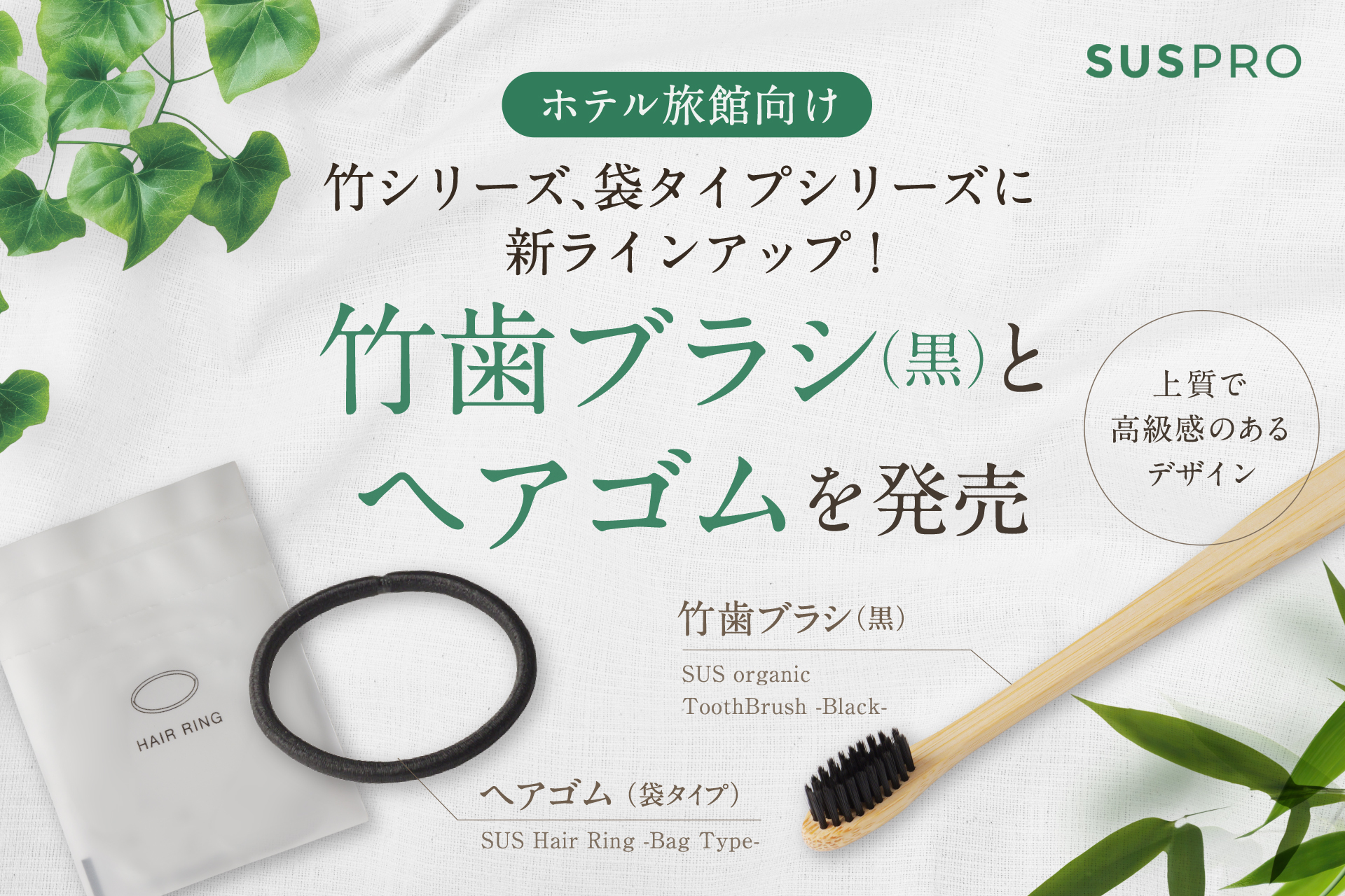 ホテルアメニティの人気シリーズに新ラインアップが追加。シックな黒竹歯ブラシと、ヘアゴムを発売開始