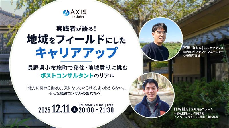 【12/11開催】実践者が語る!地域をフィールドにしたキャリアアップ ~長野県小布施町で移住・地域貢献に挑むポストコンサルタントのリアル~