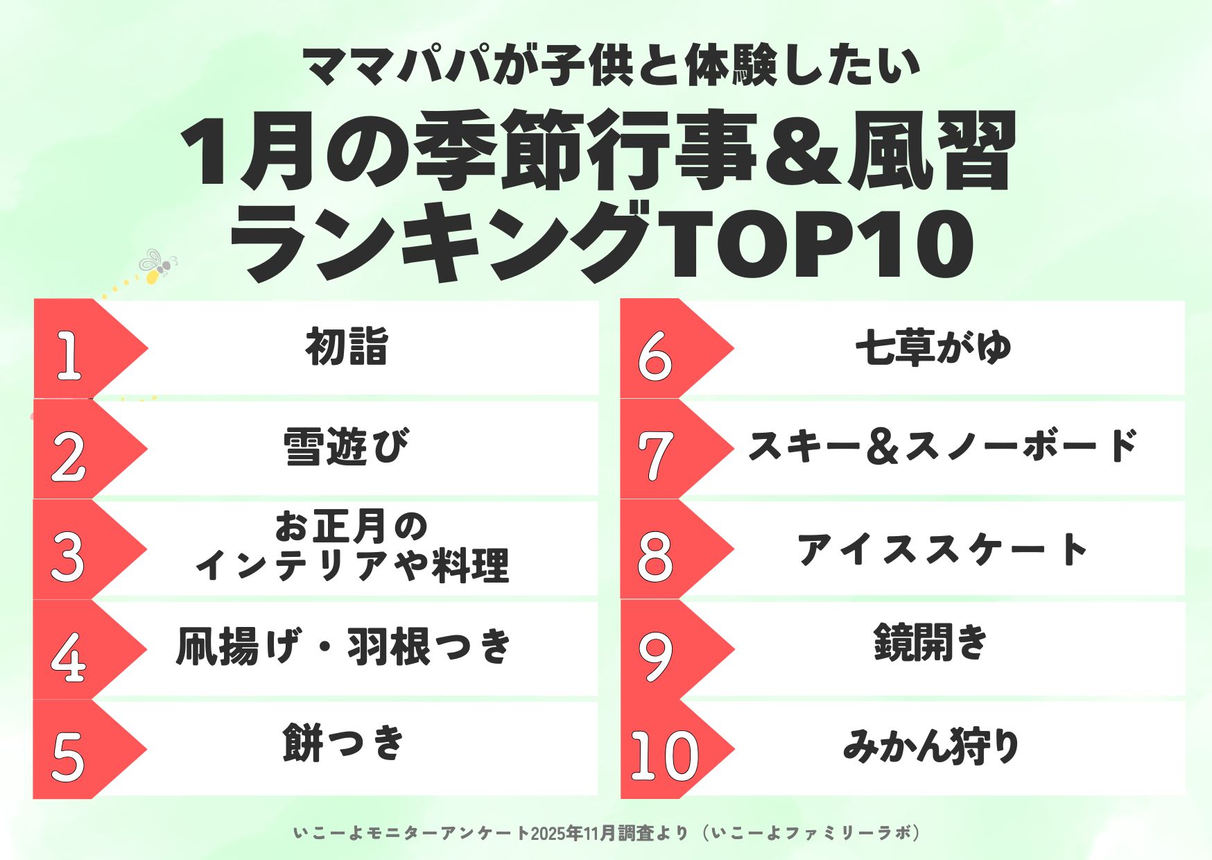 発表!子育て世帯が「1月に家族でやりたいこと」ランキング 総合1位は「初詣」2位「雪遊び」、箱根駅伝やアイススケートは何位?/いこーよファミリーラボ調査【冬休み・冬レジャー調査リリース第7弾】
