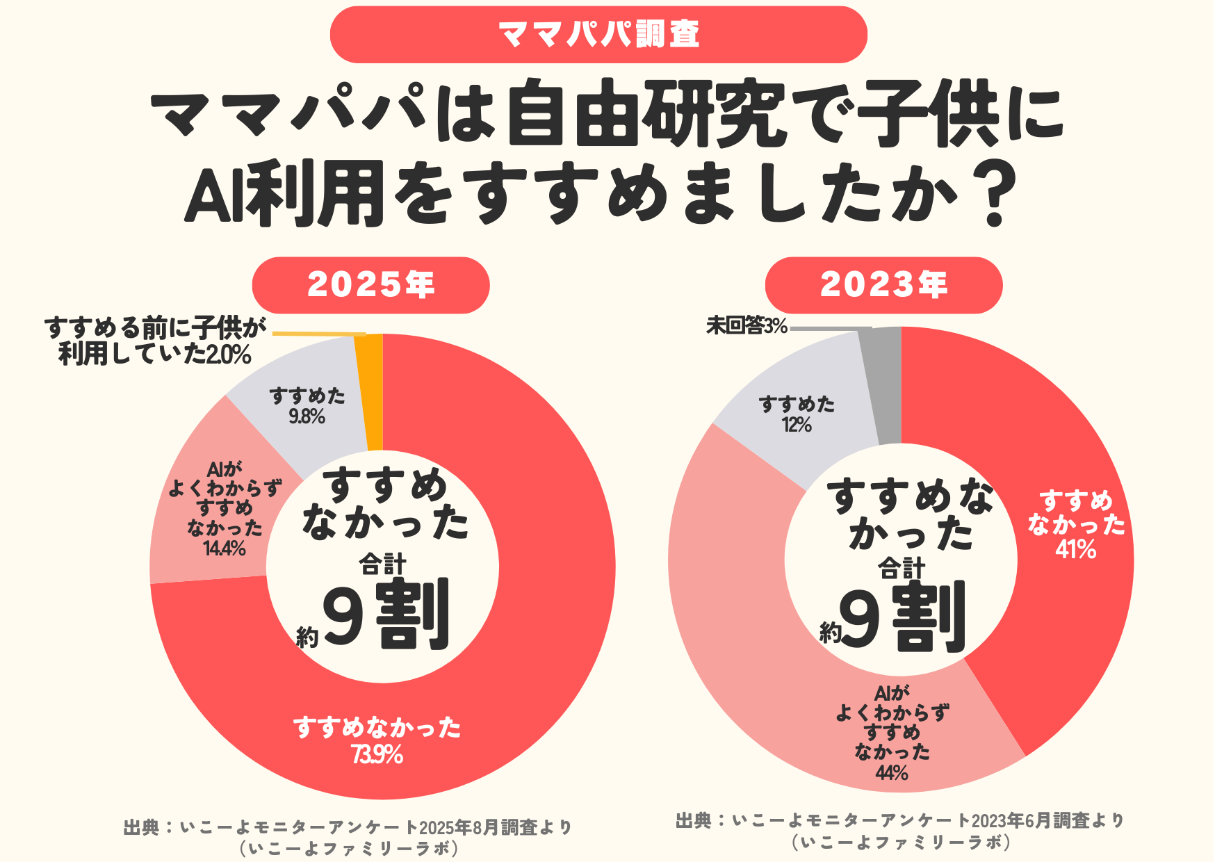 【子供のAI利用】2025年の自由研究の結果は? AI利用をすすめた保護者約1割 子供が自らAI利用をしながら行う家庭も! 親の7割以上が「半分程度までは手伝う」/いこーよファミリーラボ