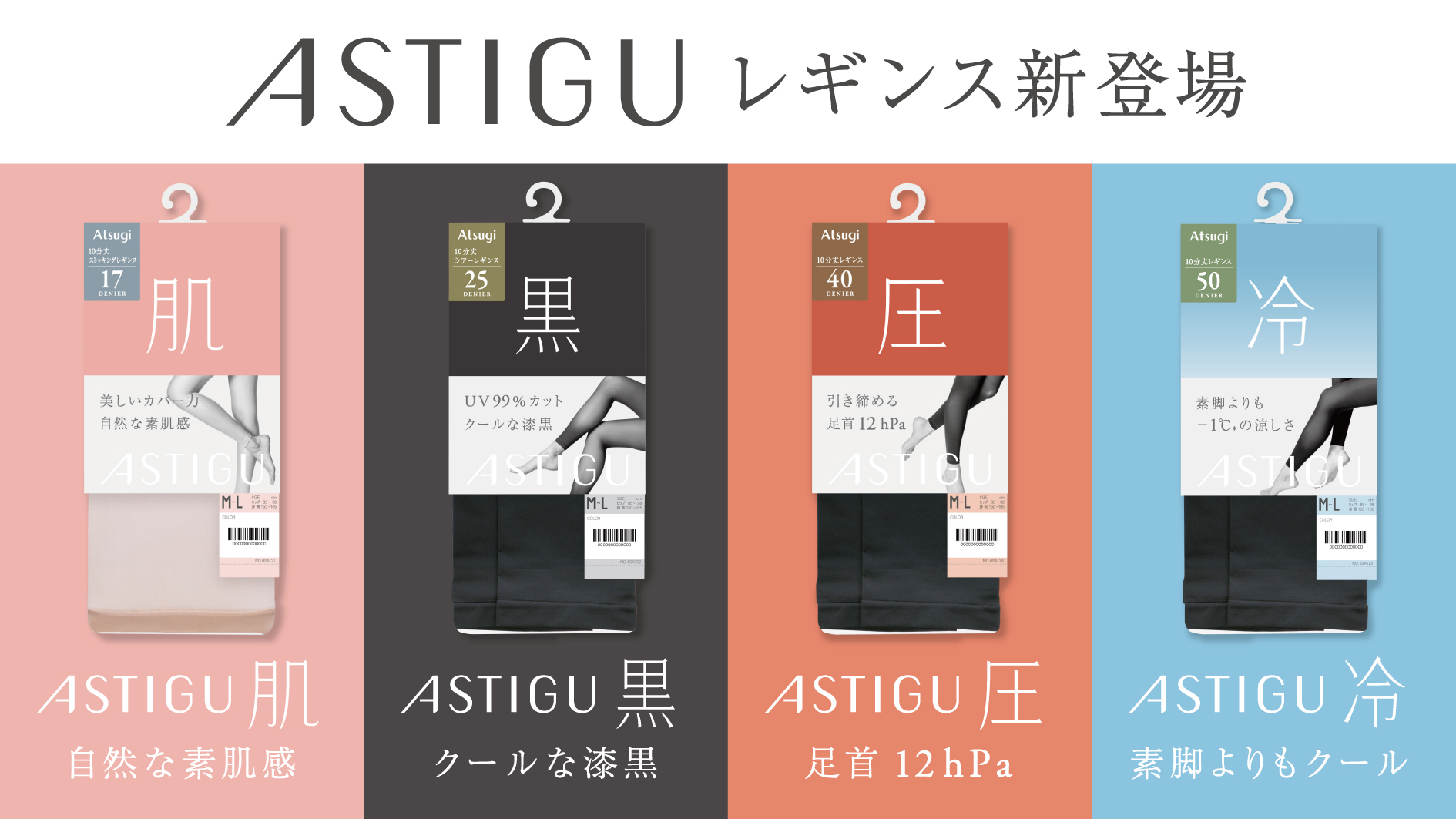 「ASTIGU/アスティーグ」にレギンスアイテムが新登場【肌】【黒】【圧】【冷】の全4種