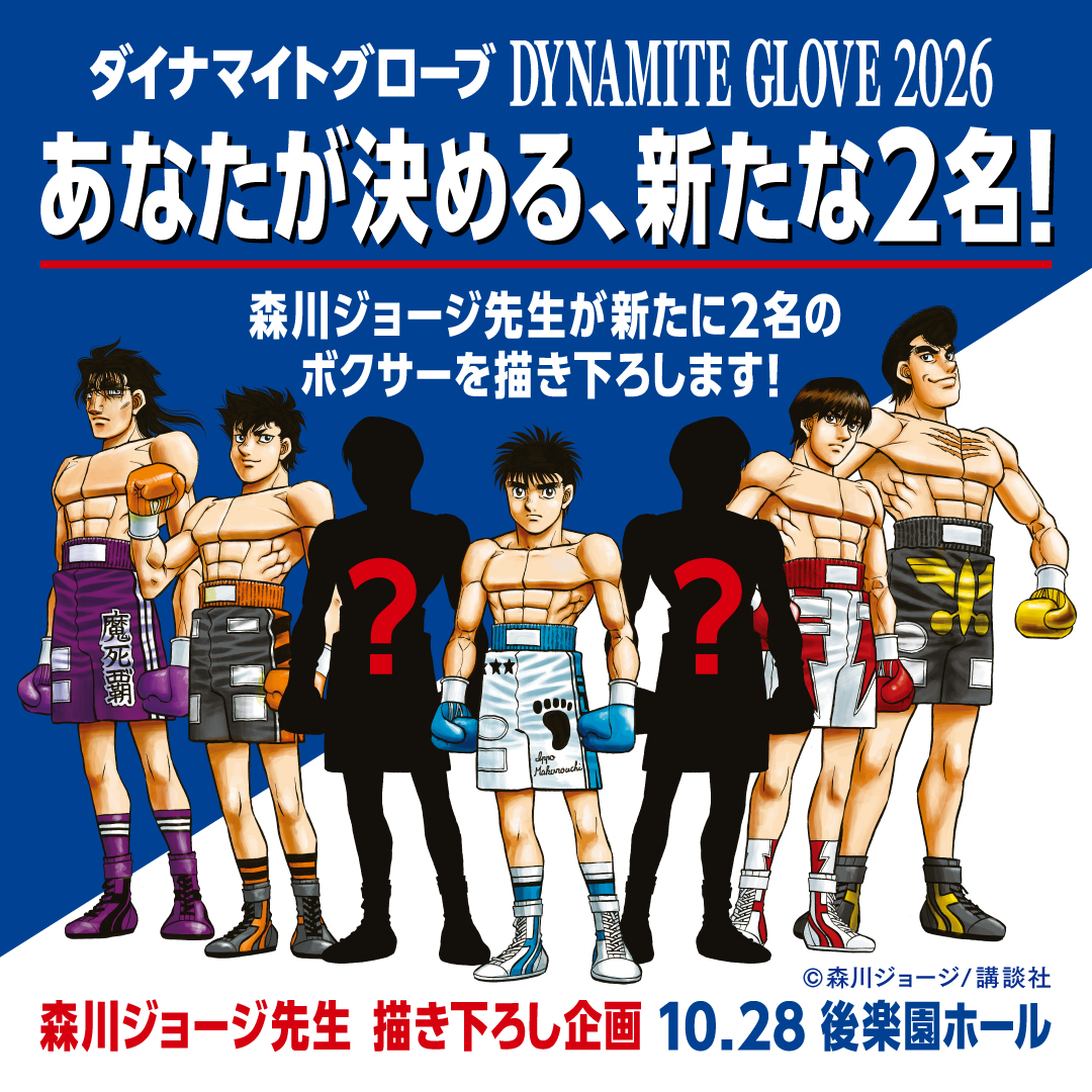 【10月28日開催】ボクシングイベント「ダイナマイトグローブ2026」後楽園ホールで開催決定!森川ジョージ先生描き下ろしメインビジュアル追加キャラ2名を決めるファン投票を4月20日より開始!