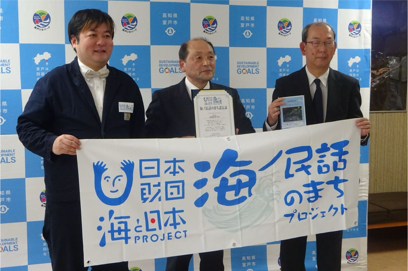 海ノ民話アニメーション「クジラとイノシシ」が完成!アニメ監督が高知県室戸市 植田壯一郎市長を表敬訪問し「海ノ民話のまち」に認定 完成アニメーションをお披露目しました