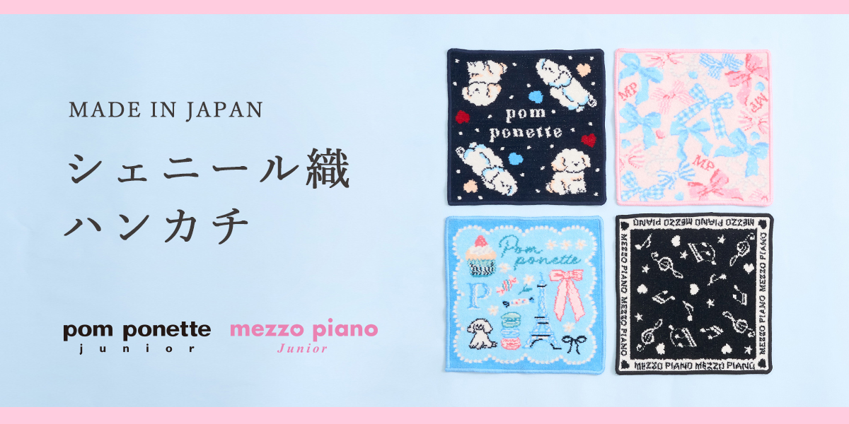 メゾピアノジュニア&ポンポネットジュニアより、ふっくらとした上質な手触りが魅力の日本製シェニール織ハンカチが、4月29日(水・祝)発売