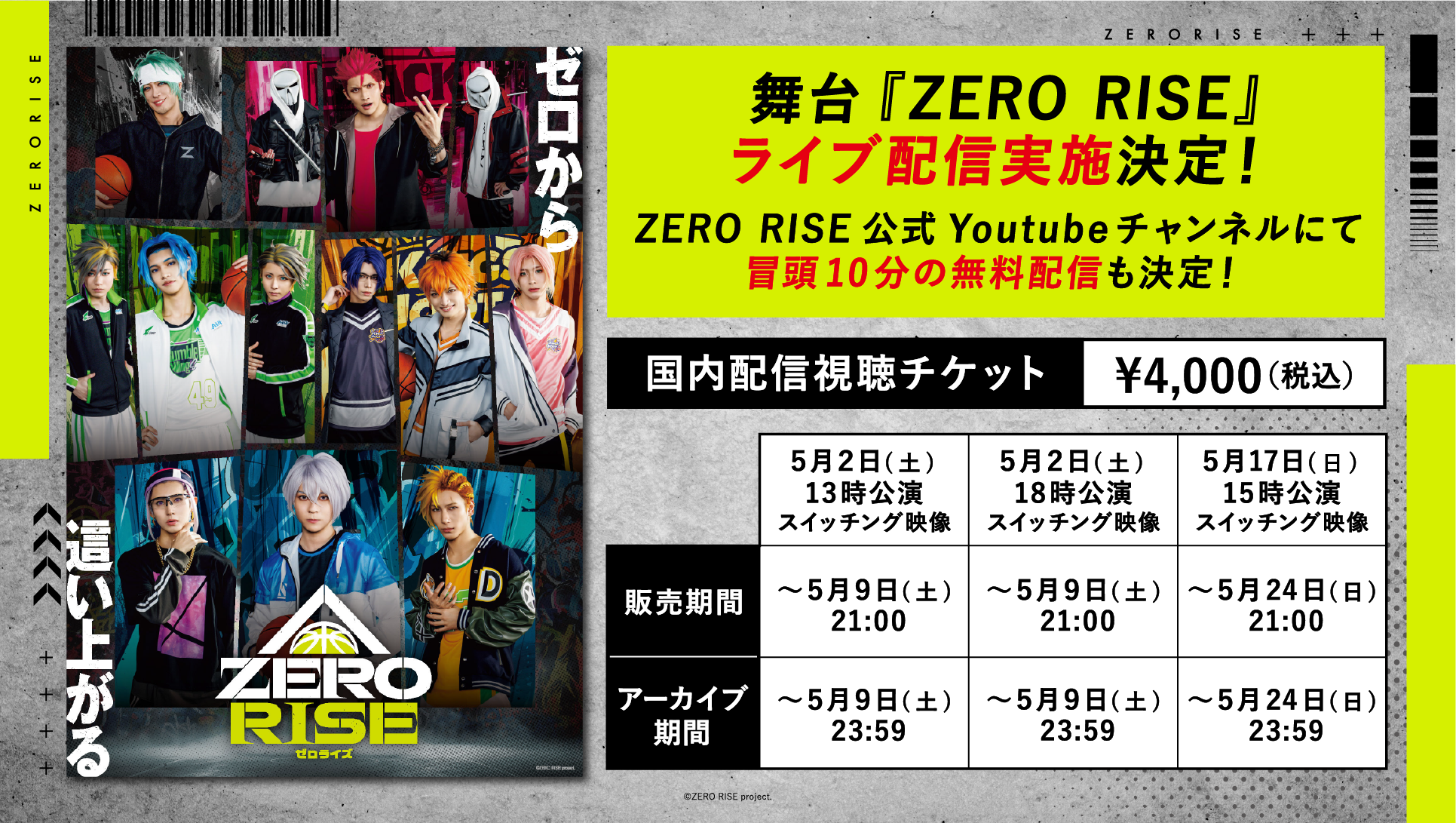 舞台『ZERO RISE』ライブ配信が決定!さらに、ZERO RISE公式Youtubeチャンネルにて冒頭10分の無料配信も実施!