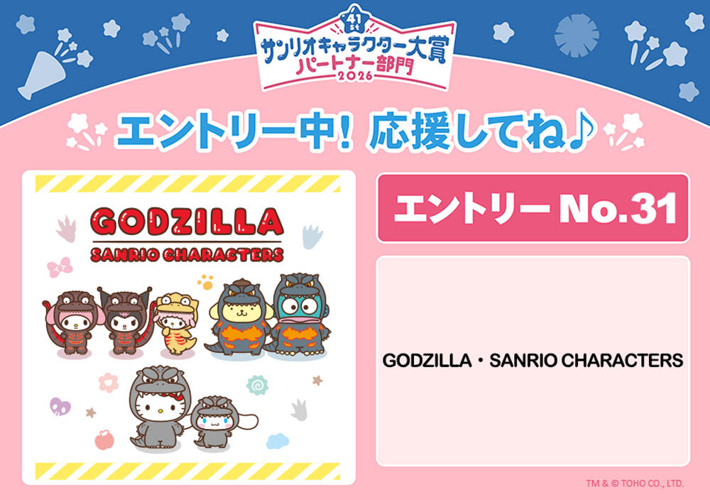 ゴジラがサンリオキャラクターズとコラボレーション!「2026年サンリオキャラクター大賞」パートナー部門にエントリー決定!限定デザインのグッズも発売決定!