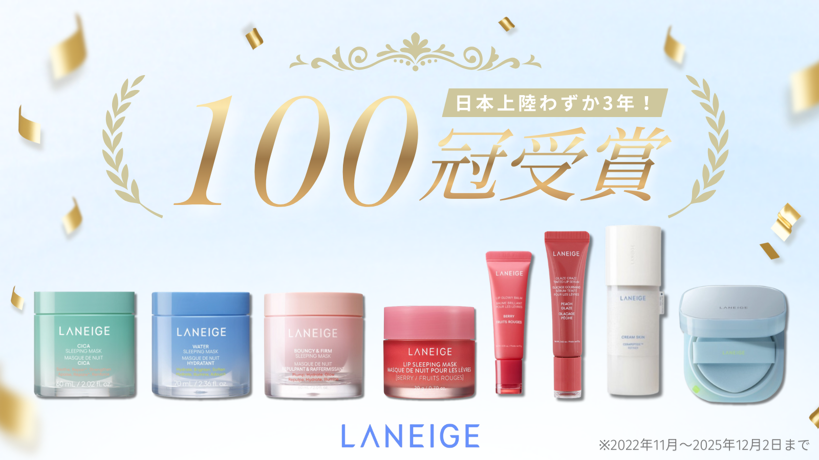 [LANEIGE] ベストコスメ企画で累計100冠*¹達成! 日本上陸からわずか3年での快挙!