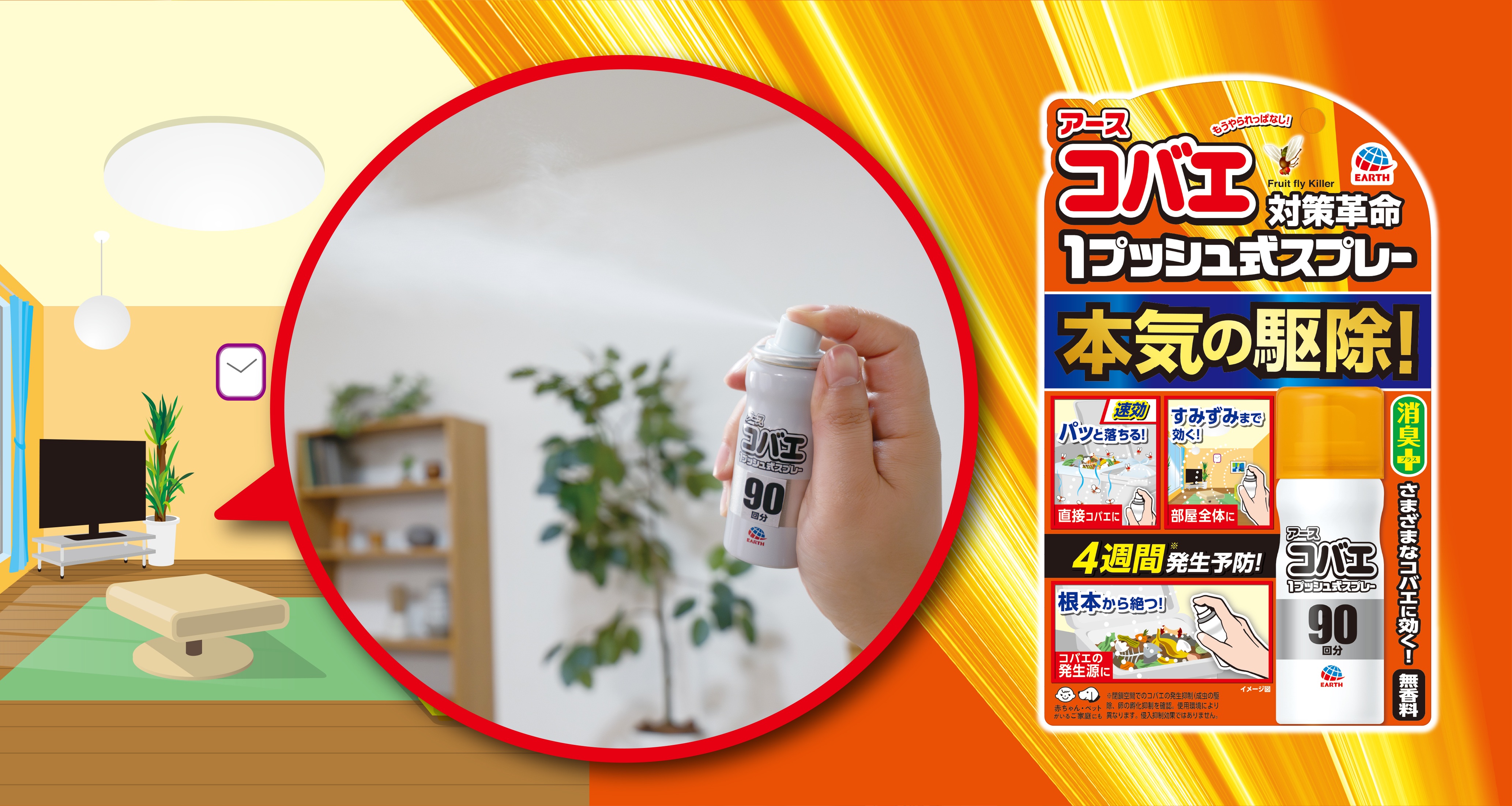 『アースコバエ 1プッシュ式スプレー』をリニューアル 速効駆除と4週間(※1)の発生予防でコバエの対策革命!