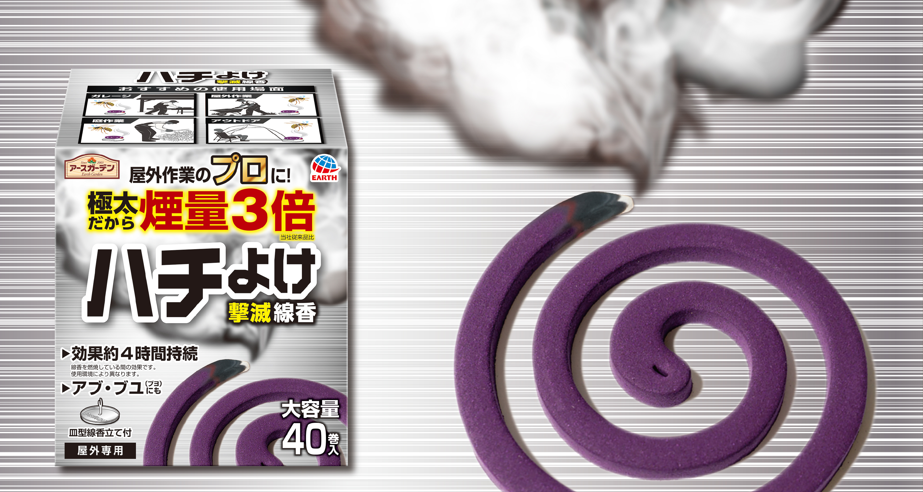 温暖化に伴い長期化するハチの活動への対策を強化! 『アースガーデン ハチよけ撃滅 線香40巻入』新発売