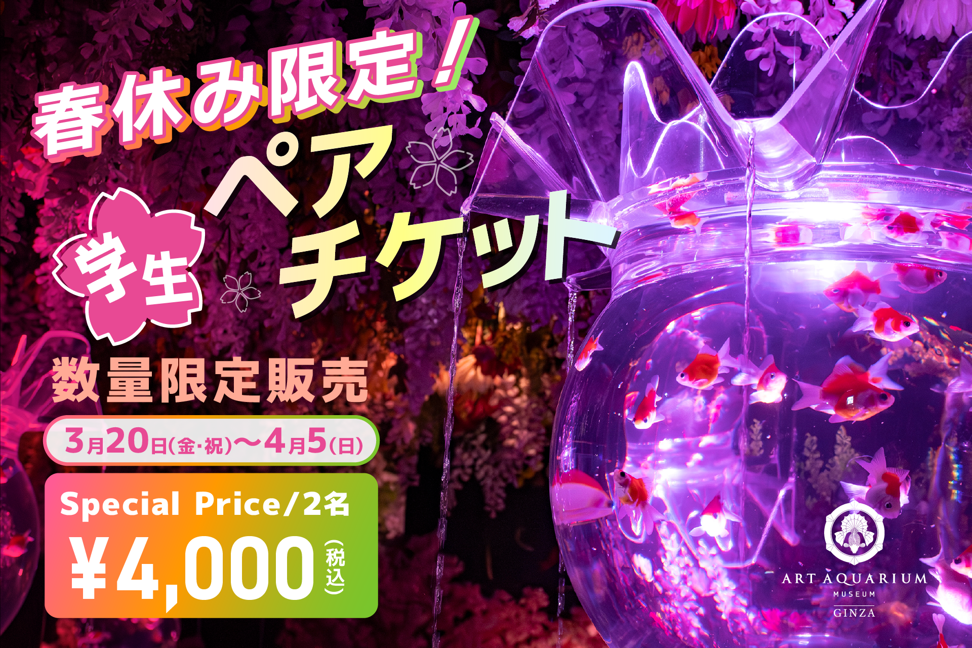 春休み!学生だけの特別価格でアートアクアリウム美術館を楽しもう 春の学生ペアチケットを販売!