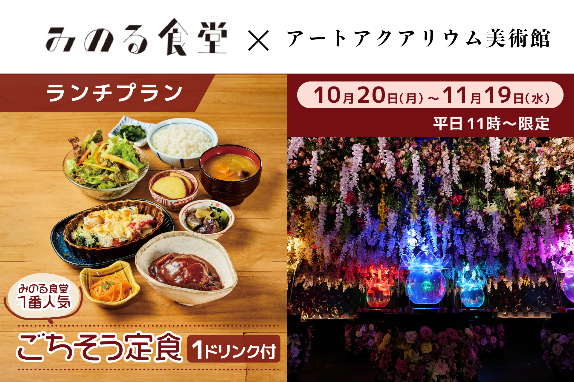 【アートアクアリウム美術館 食の秋コラボ第四弾】みのる食堂の大人気「ごちそう定食」と金魚アート鑑賞プラン
