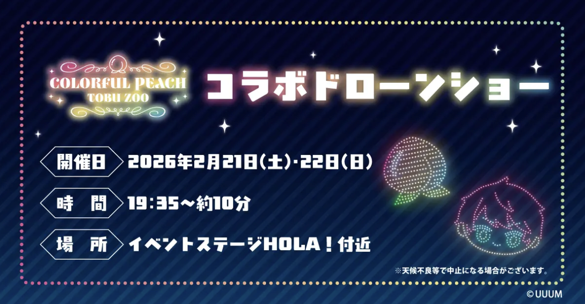 【実績レポート】IPコラボ×ドローンショー導入で来場者1.9万人・SNS拡散ー「カラフルピーチ×東武動物公園」の集客・拡散事例