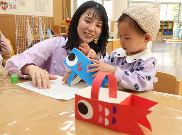 こどもの日を前に高槻市で親子でこいのぼりバッグ作り
