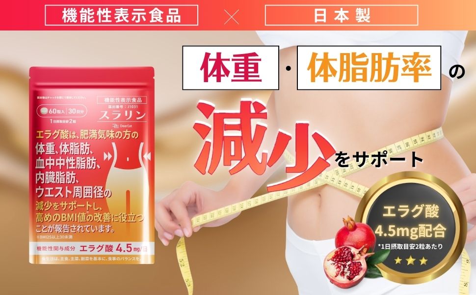 【新発売】ダイエットを応援!機能性表示食品「スラリン」登場。 話題の成分「エラグ酸」で、体重・体脂肪の減少をサポート