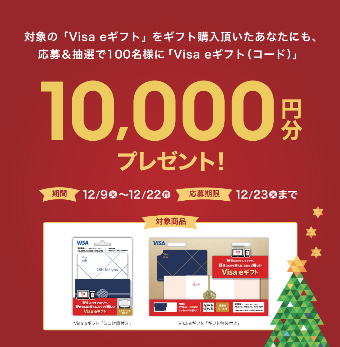 年末の贈り物に最適!Visa eギフト キャンペーン開催 抽選で100名様にVisa eギフト 1万円分をプレゼント
