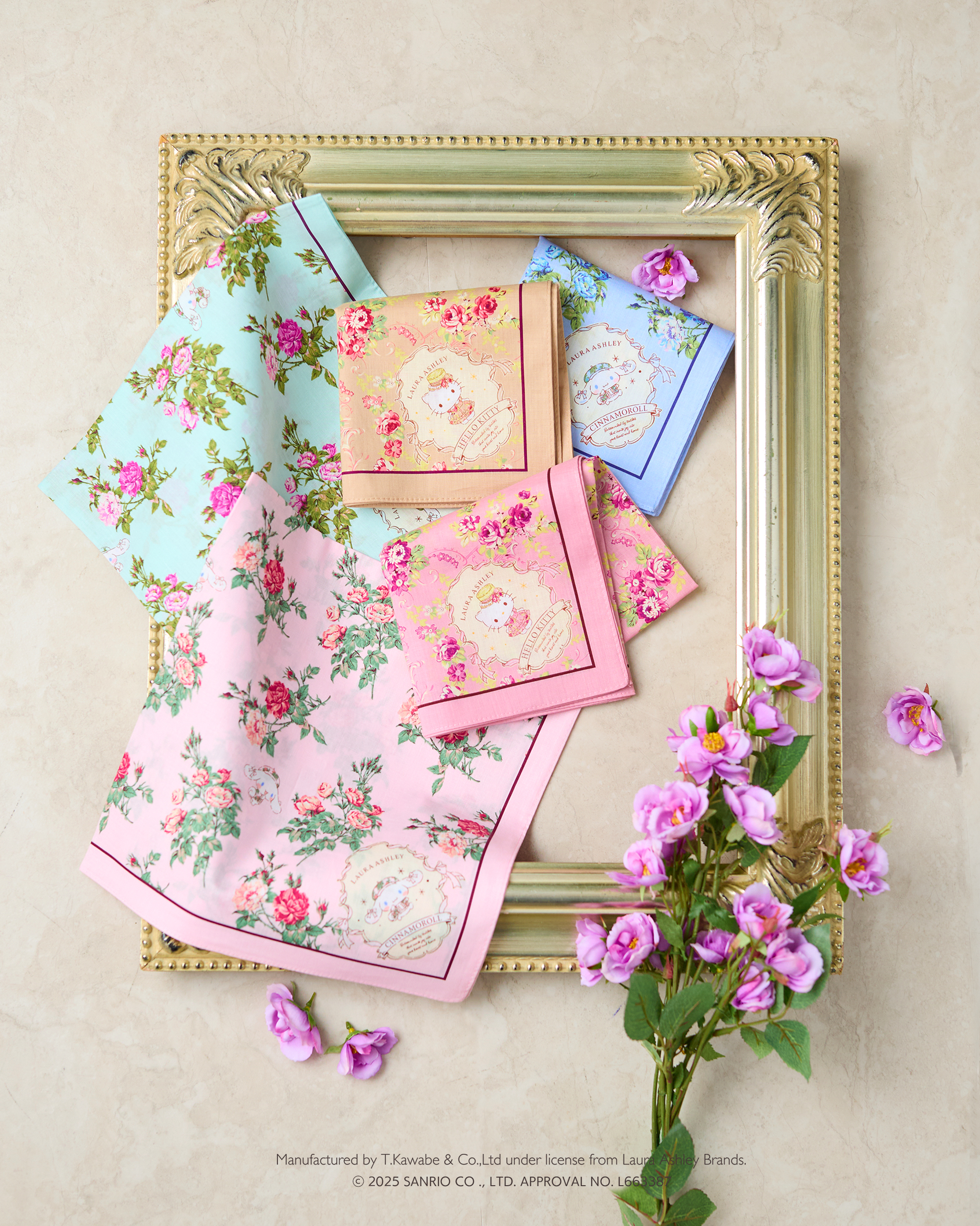 服飾雑貨メーカー川辺株式会社 「ローラ アシュレイ×サンリオキャラクターズ」のハンカチシリーズ新作登場!