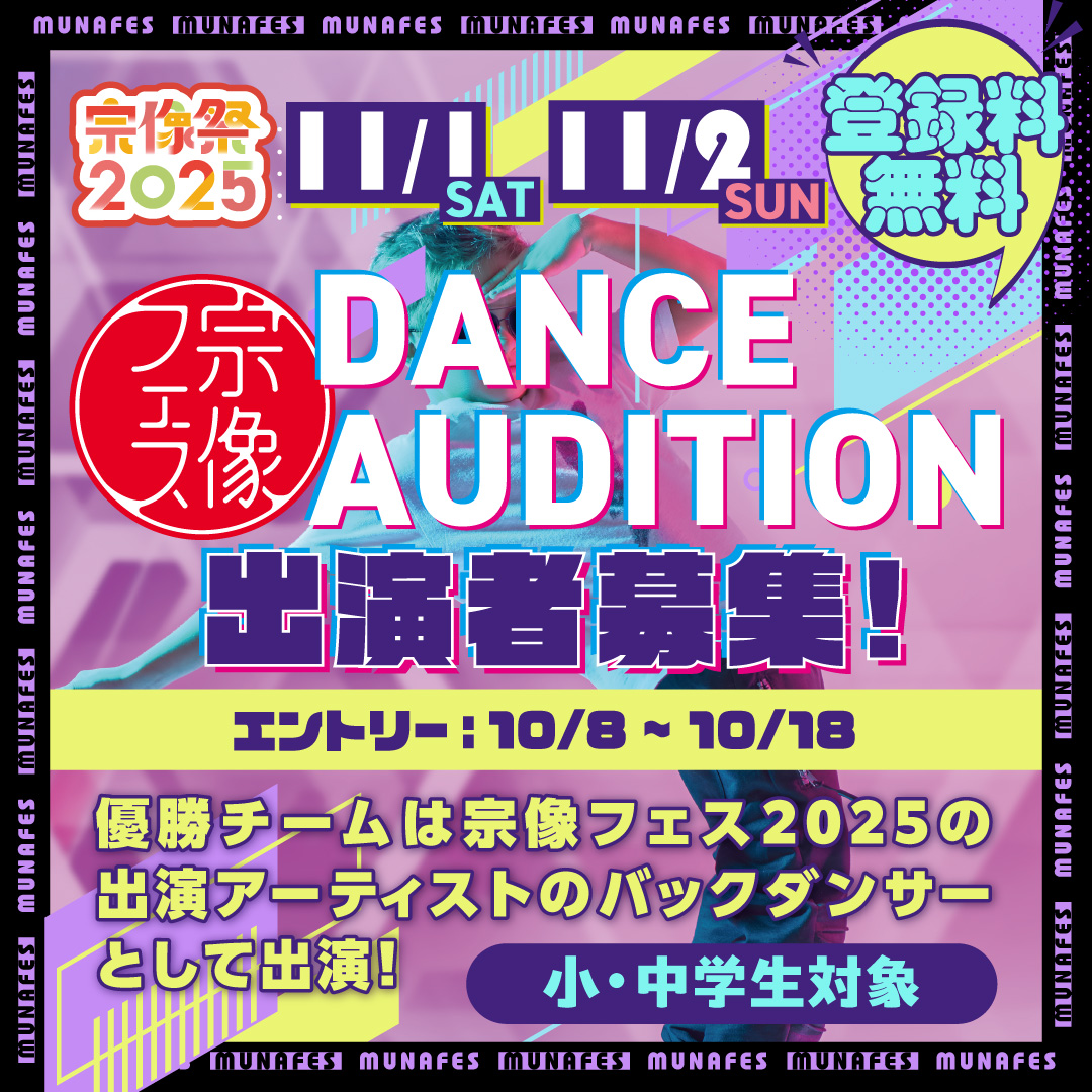 【宗像フェス2025】宗像フェスは未来を担う次世代の夢を応援します!今年はアーティストと一緒のステージで踊れるバックダンサーオーディション☆小・中学生対象です