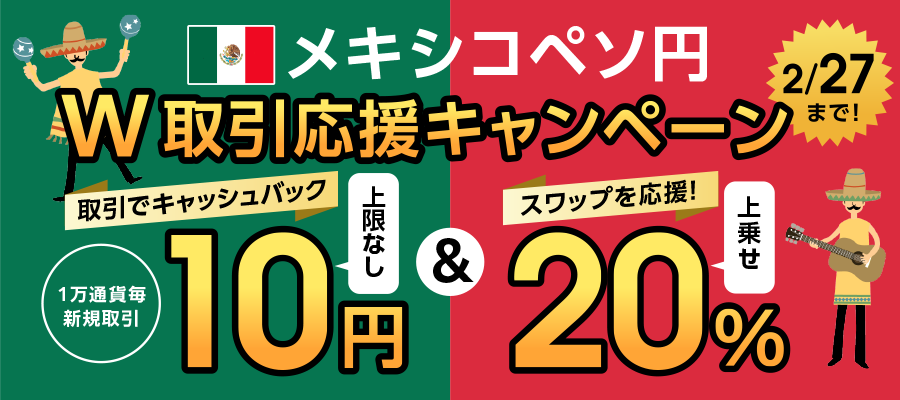 【メキシコペソ/円】スワップ20%増額&取引キャッシュバックのW取引応援キャンペーン開催!【トライオートFX | インヴァスト証券】