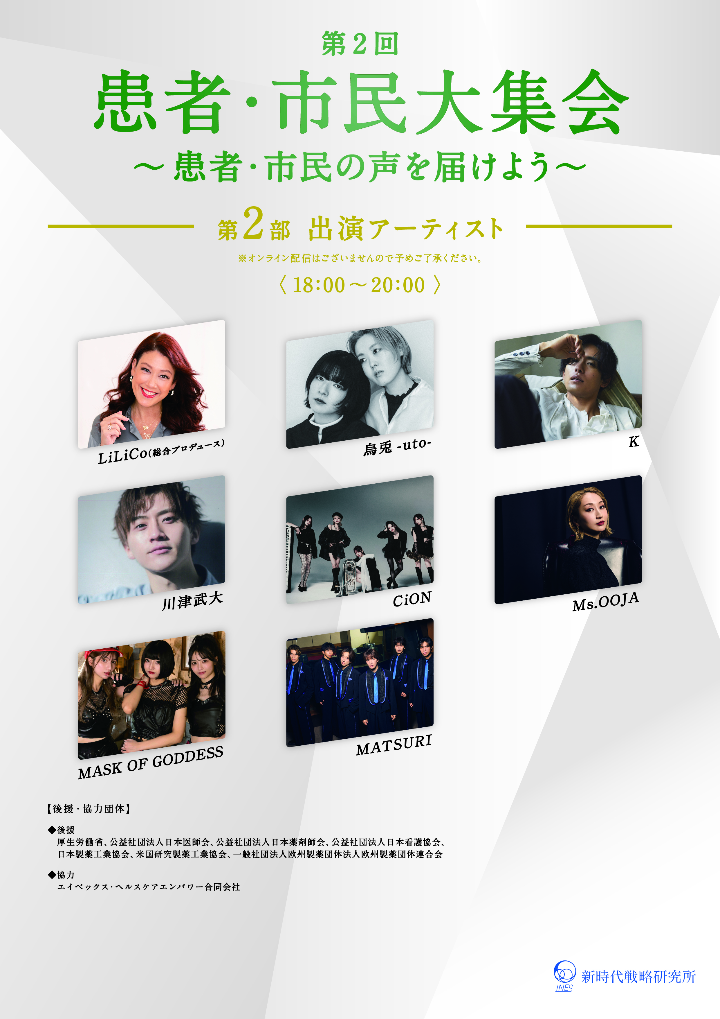 K、CiON、MATSURI、Ms.OOJA、LiLiCoら豪華アーティストが集結!『第2回 患者・市民大集会 ~患者・市民の声を届けよう~』