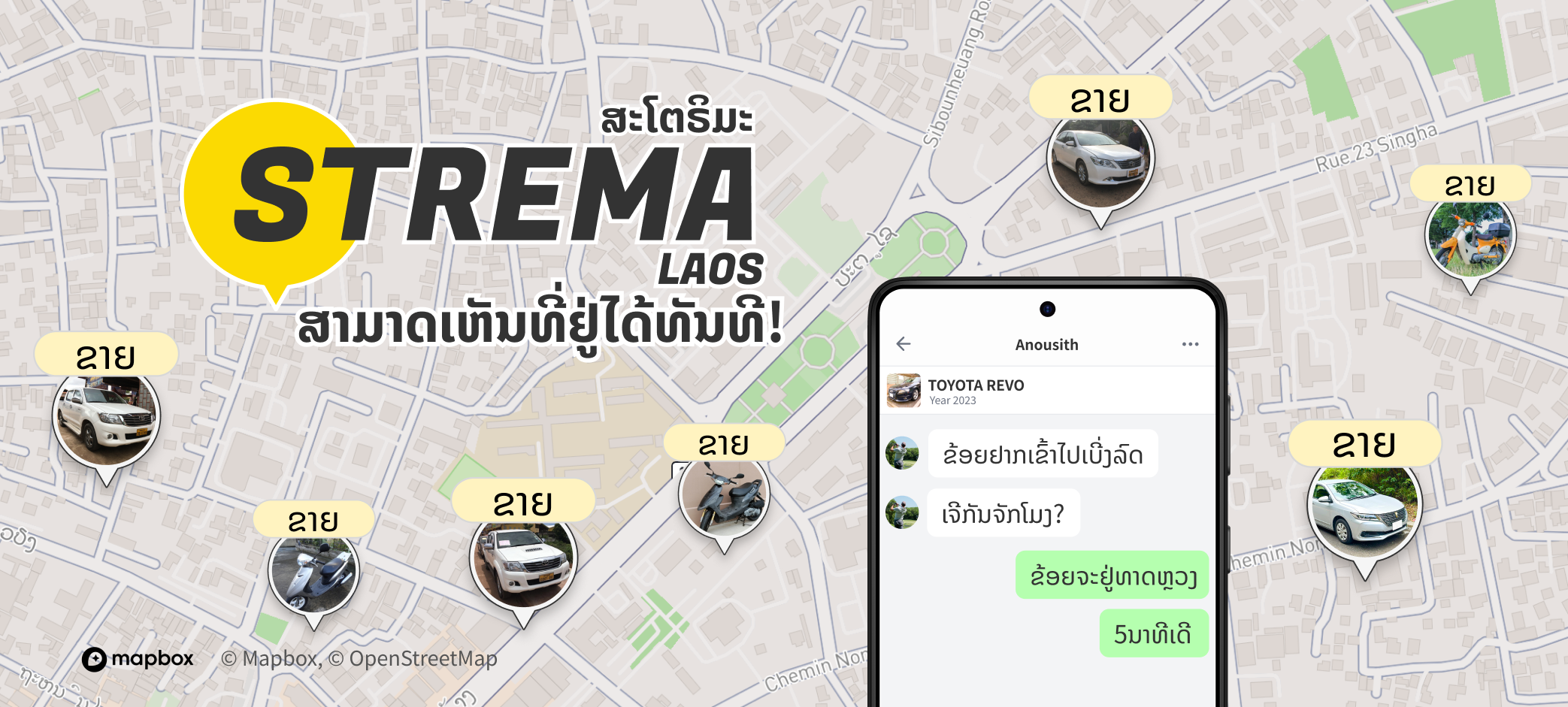 ストリマ、ラオスでサービスリリース!路上販売が主流の市場で200台超の中古車が出品