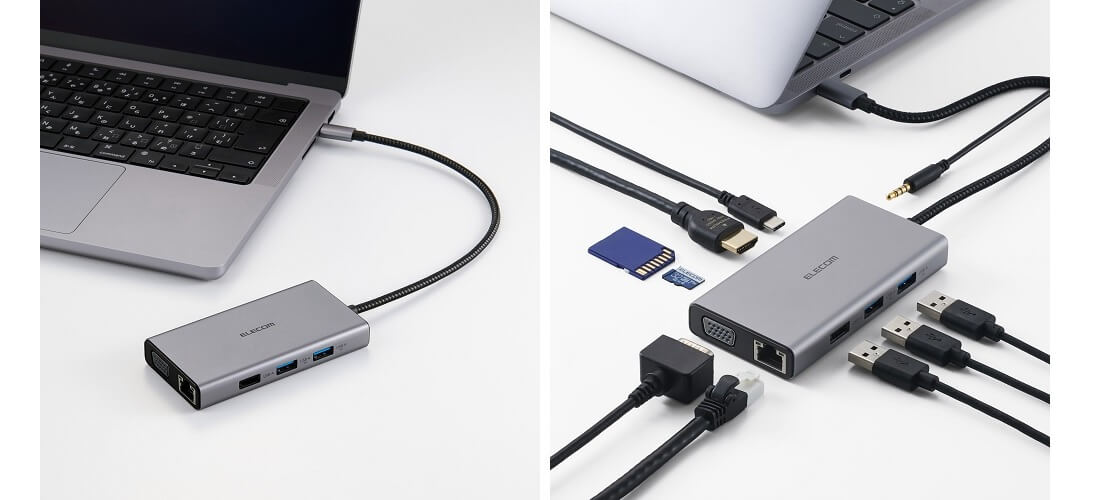 VGA+HDMI搭載で同時出力も可能!ケーブル1本で10ポートの機能拡張ができる、USB Type-C接続のドッキングステーションを新発売