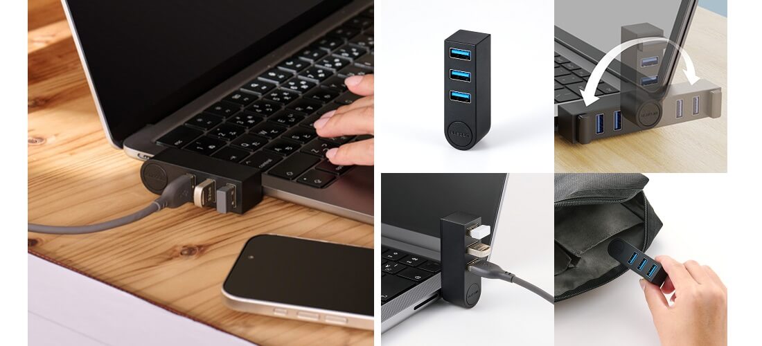 スイングコネクターで隣のポートに干渉しづらい!USB 5Gbps対応USB-A×3ポート搭載、直挿しタイプのUSB Type-C接続USBハブを新発売