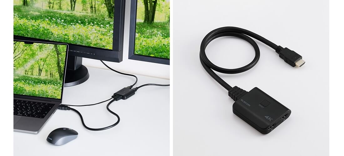 プレゼンテーションや会議をスムーズに!パソコンやゲーム機からの4K映像と音声を2台のディスプレイで同時に楽しめるHDMI分配器を新発売