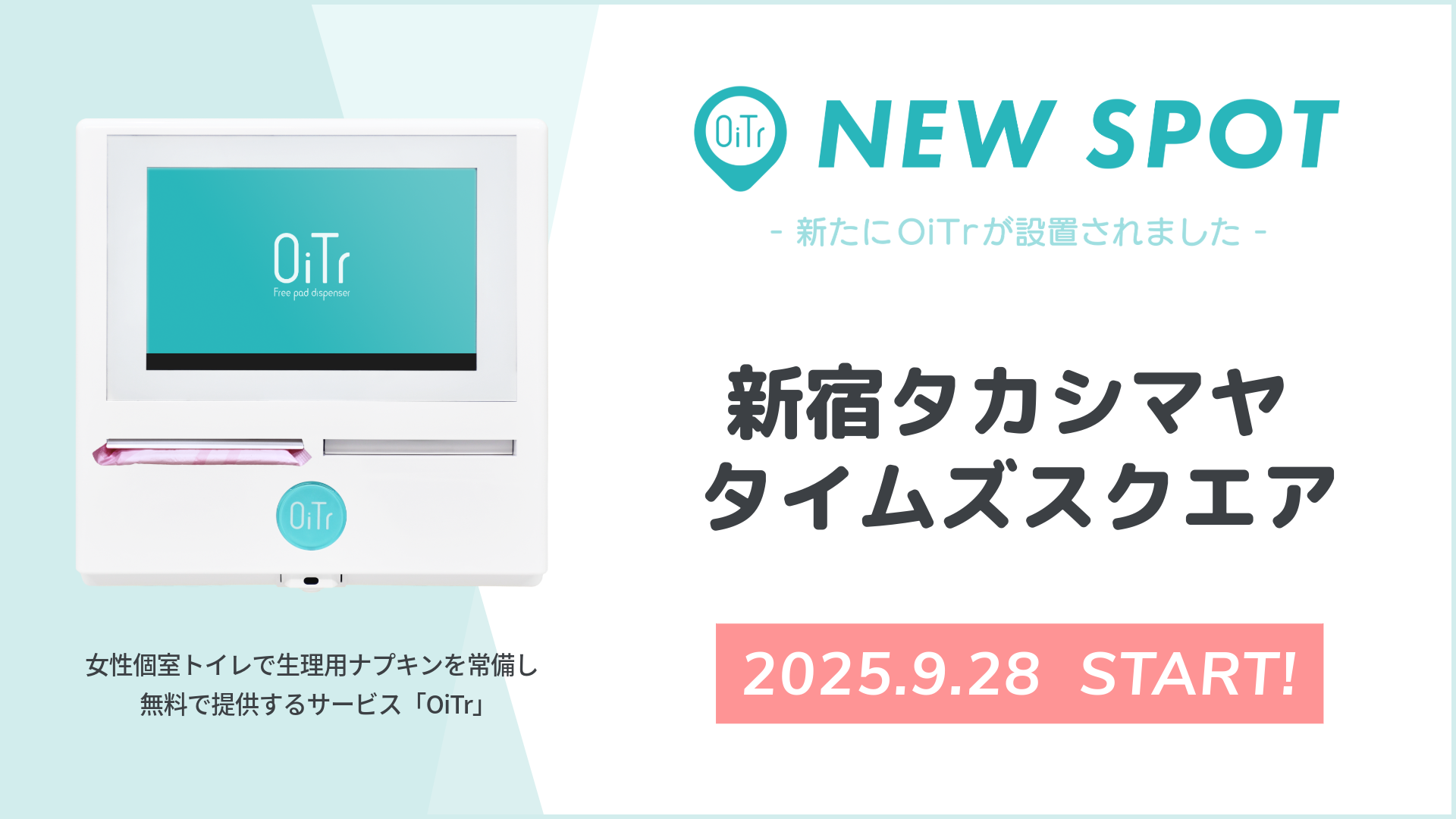 『新宿タカシマヤ タイムズスクエア(東京都渋谷区)』にOiTrを設置! 女性個室トイレに生理用ナプキンを常備し、誰もが安心できる社会へ