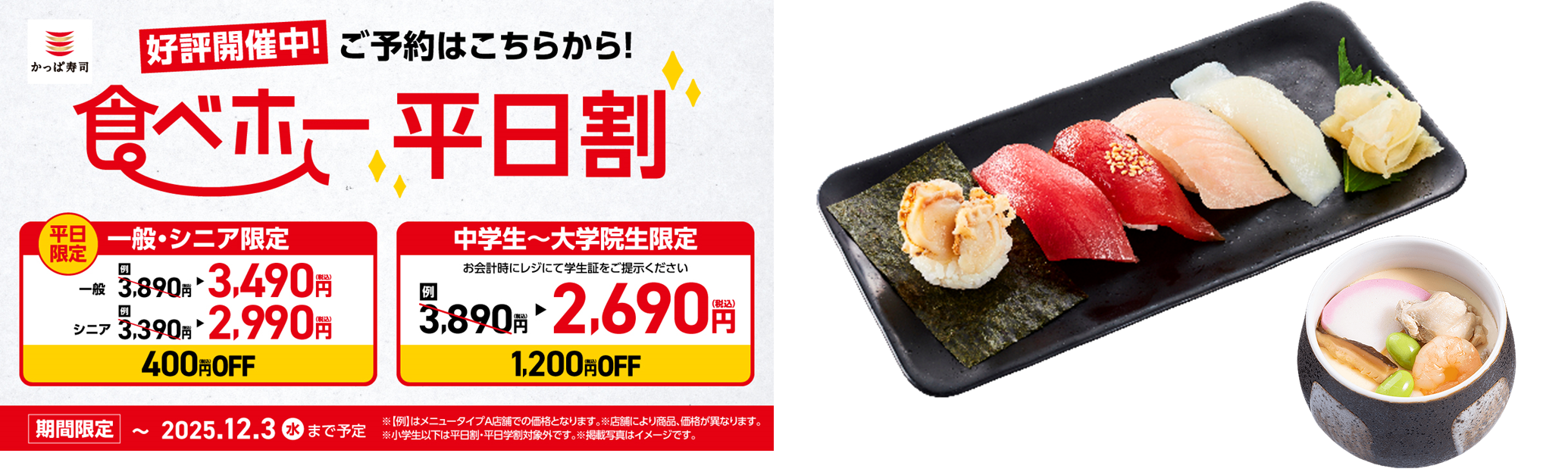 100店舗以上で、平日午前10時30分から開店【かっぱ寿司】11月4日(火)~一部店舗で営業時間拡大 おにぎりと味噌汁のセットや平日限定価格のうどんで、遅めの朝ごはんやブランチ利用にも、もっと便利に!