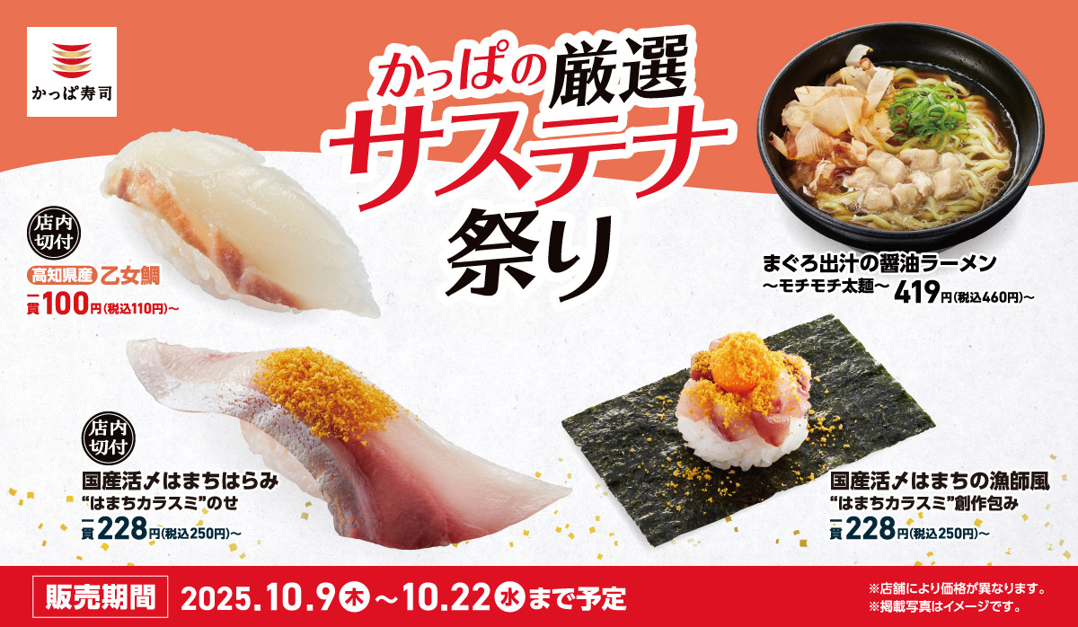 国産活〆はまちと“はまちカラスミ”を使ったサステナメニューなど3種が新登場! 持続可能な海の恵みを味わう「かっぱの厳選サステナ祭り」開催